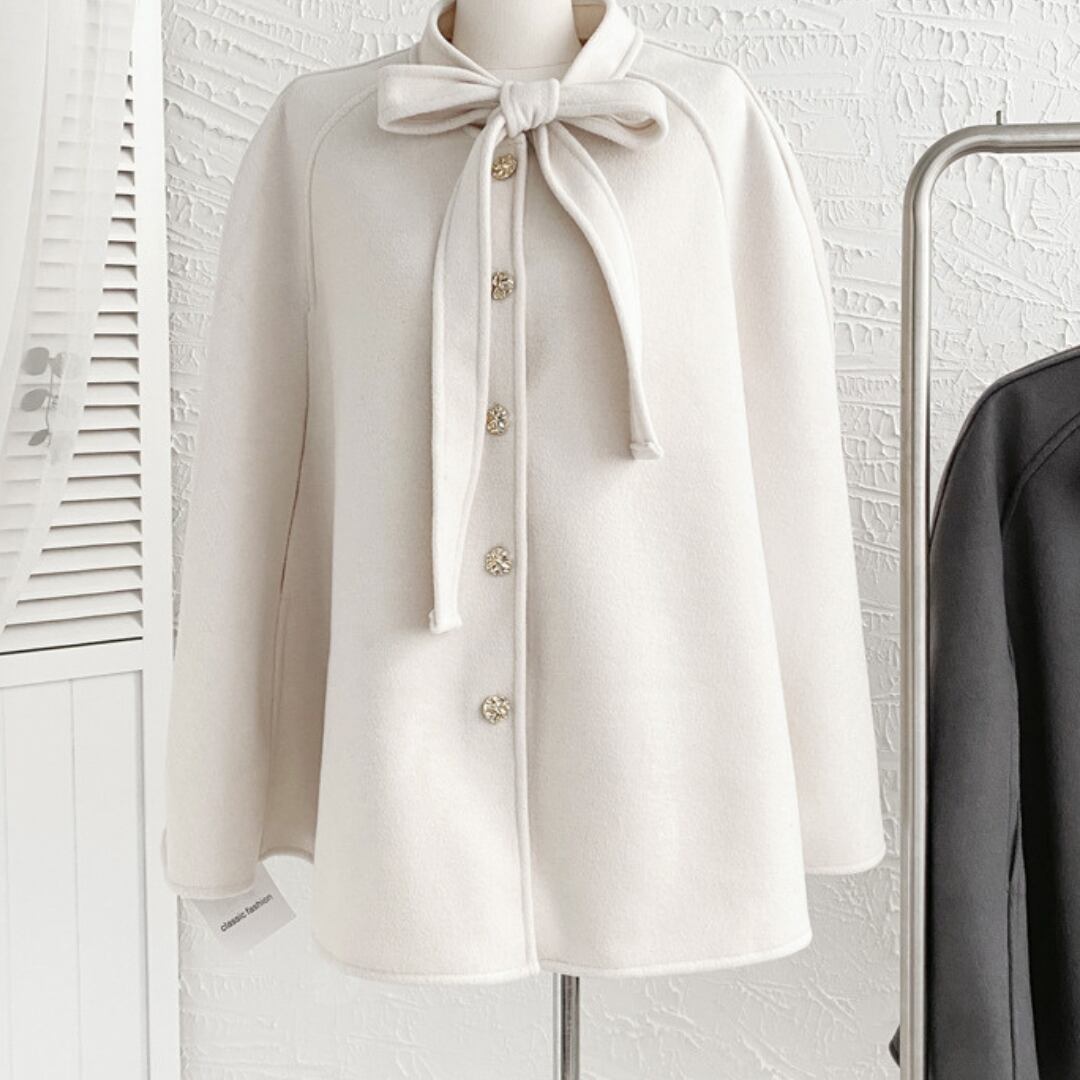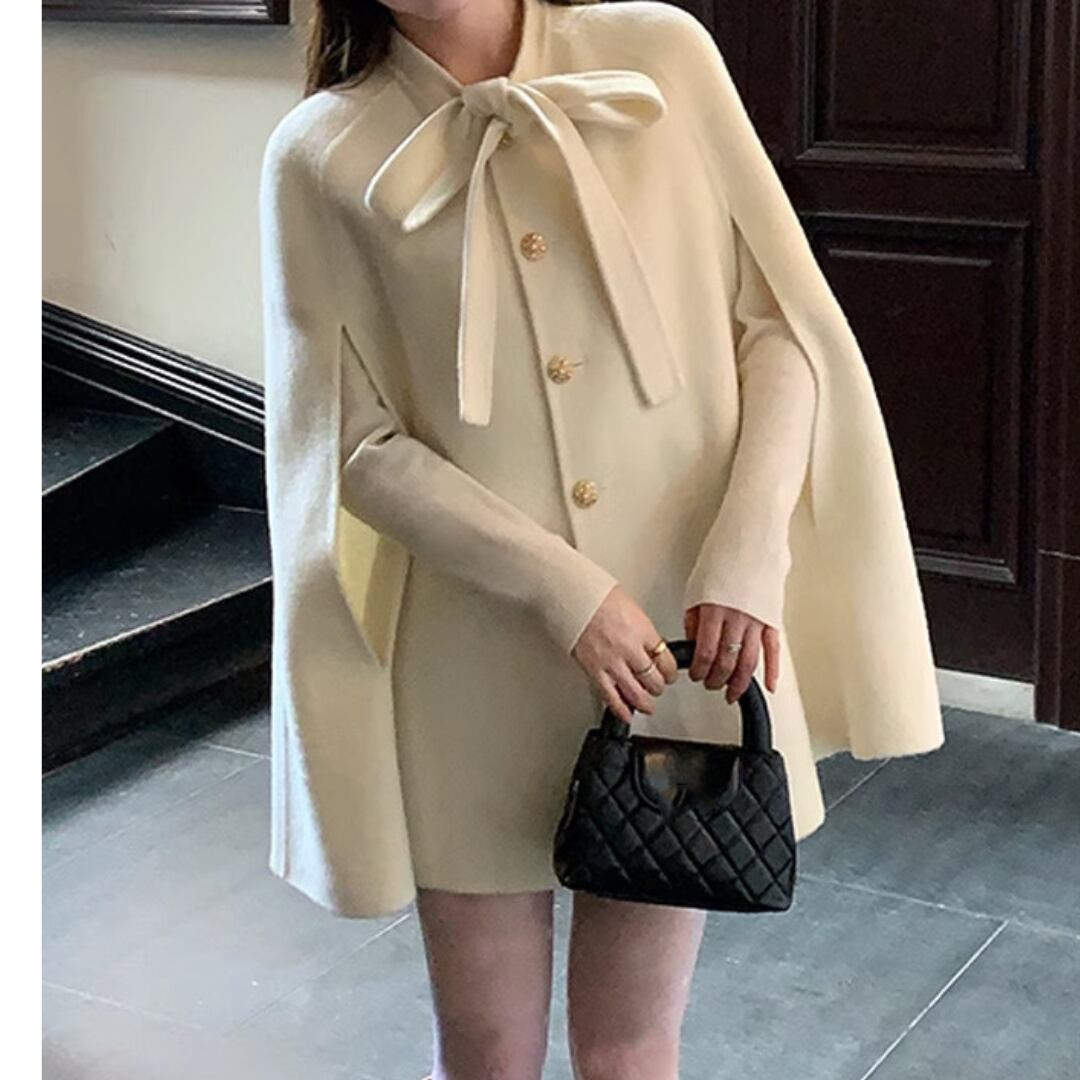 新作エレガントマントコート蝶結びは、その名の通りエレガントさが際立つ一枚です!首元の蝶結びが、スタイリッシュな美しいラインを引き立てます。カジュアルな日常使いから特別なイベントまで幅広くご利用いただけるこのコート、ぜひあなたのワードローブに加えてみてください!