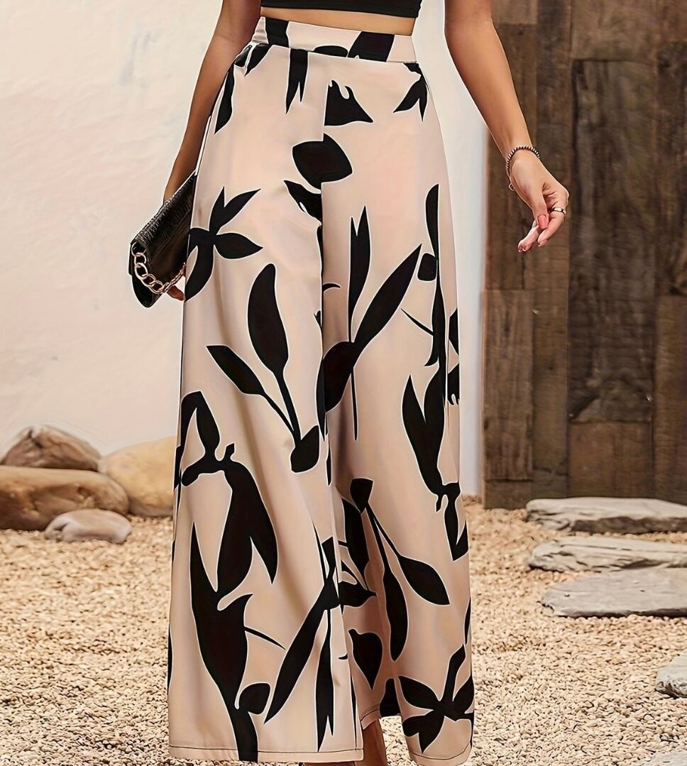 高腰垂れ下がった感じの広い足のエレガントズボン