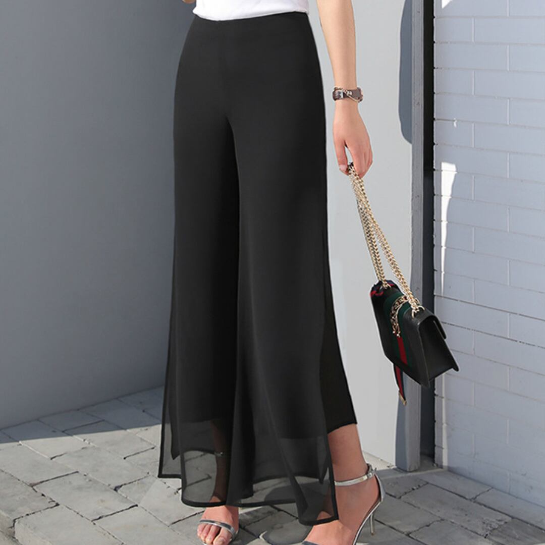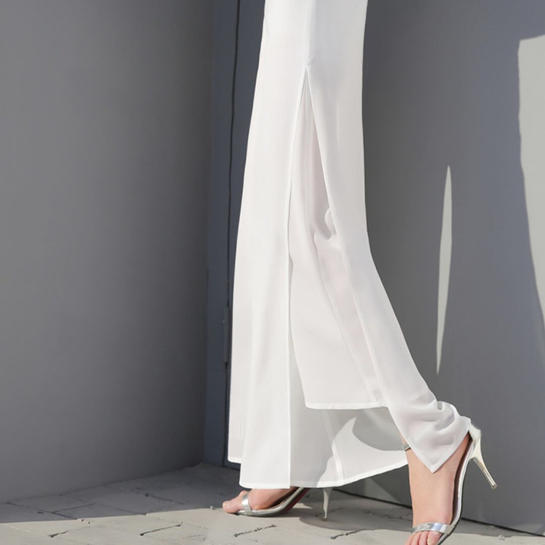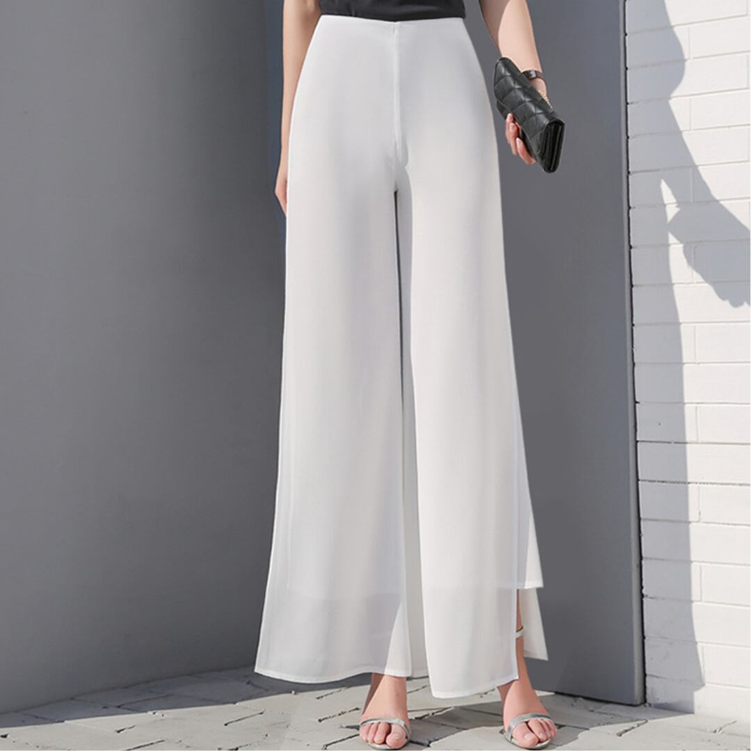 ワイドパンツ シフォン ハイウエストのエレガントスリット