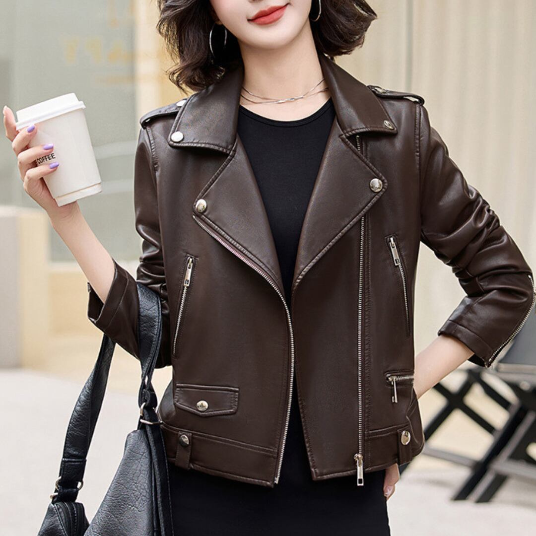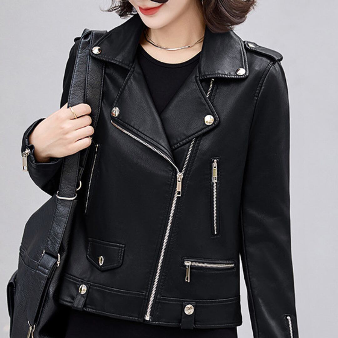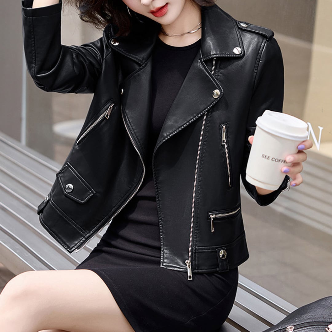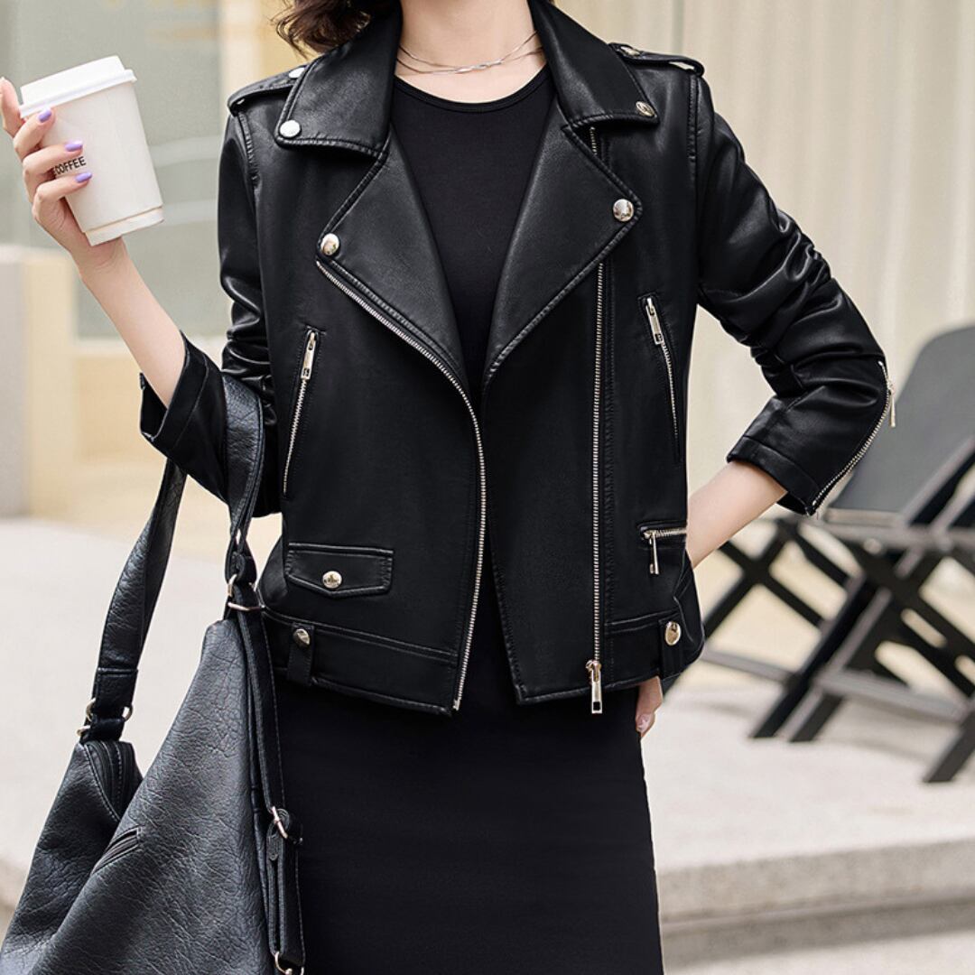 エレガントフェイクレザーライダースジャケット