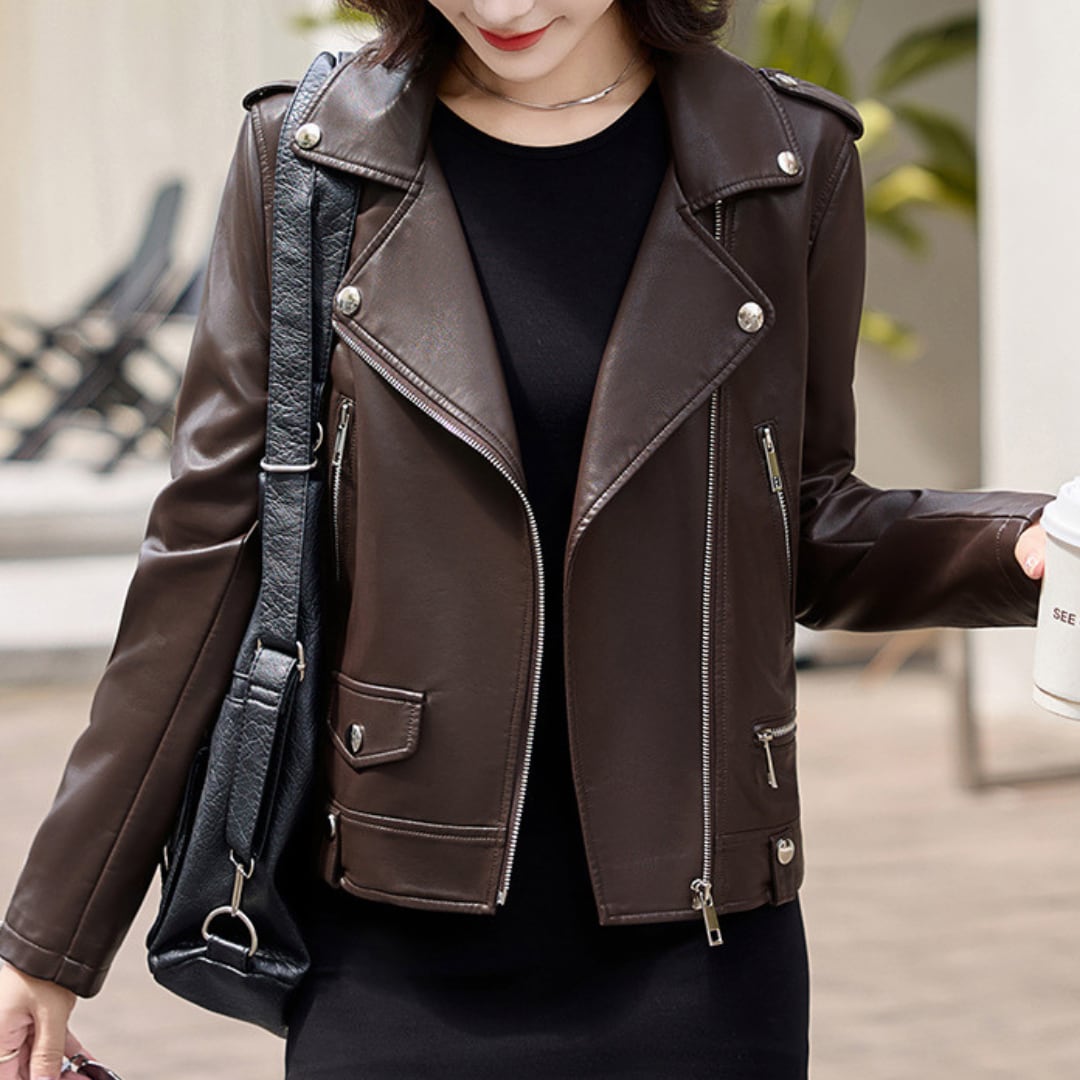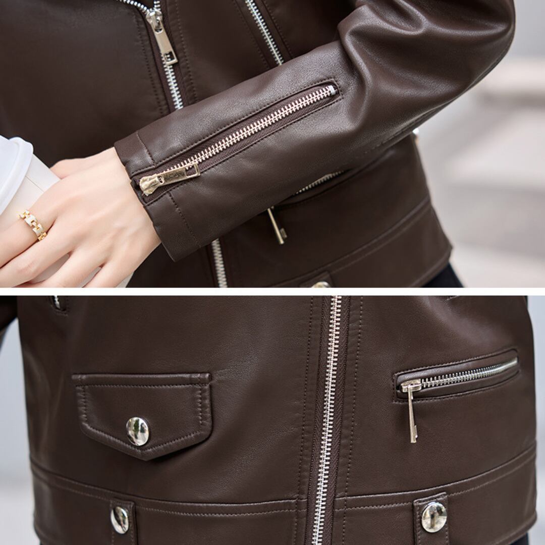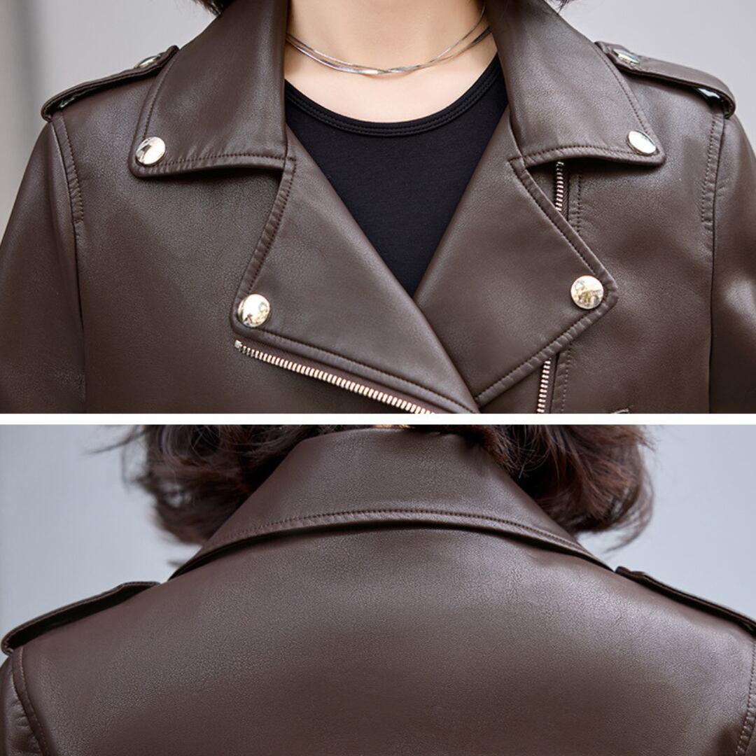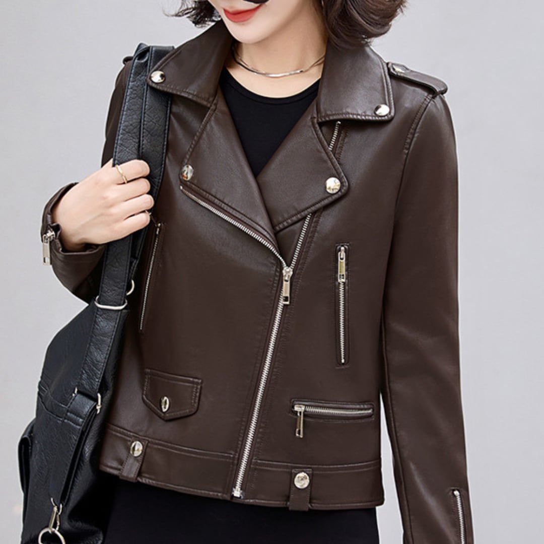エレガントフェイクレザーライダースジャケット