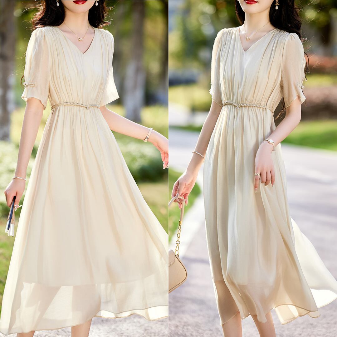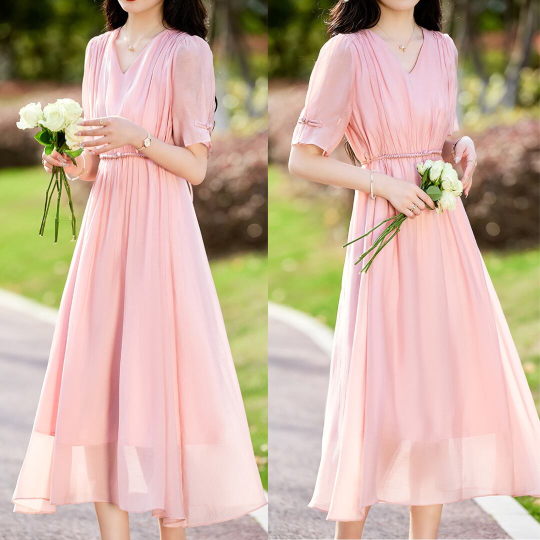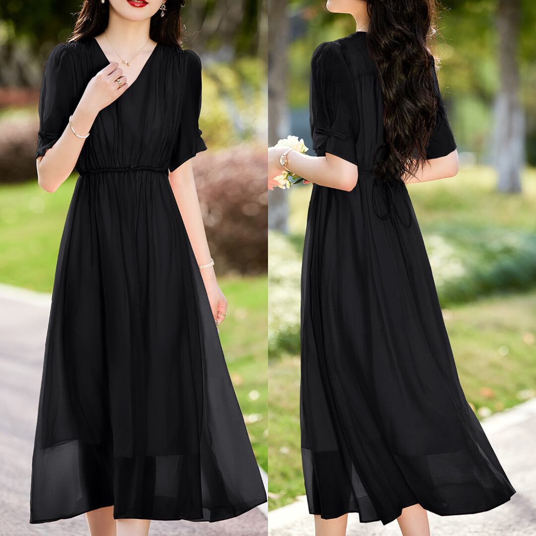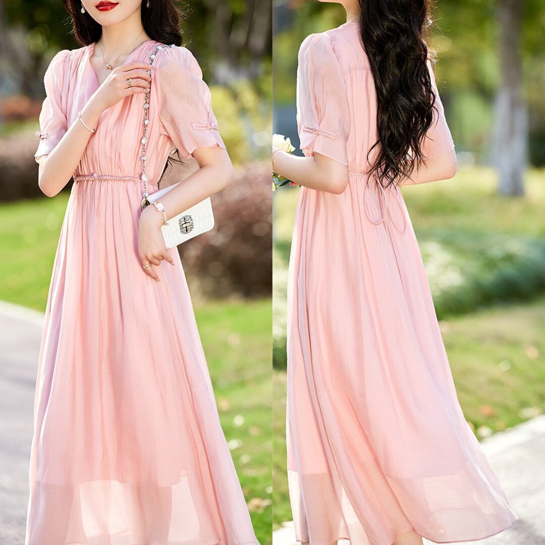 エレガントなVネックシフォンワンピース