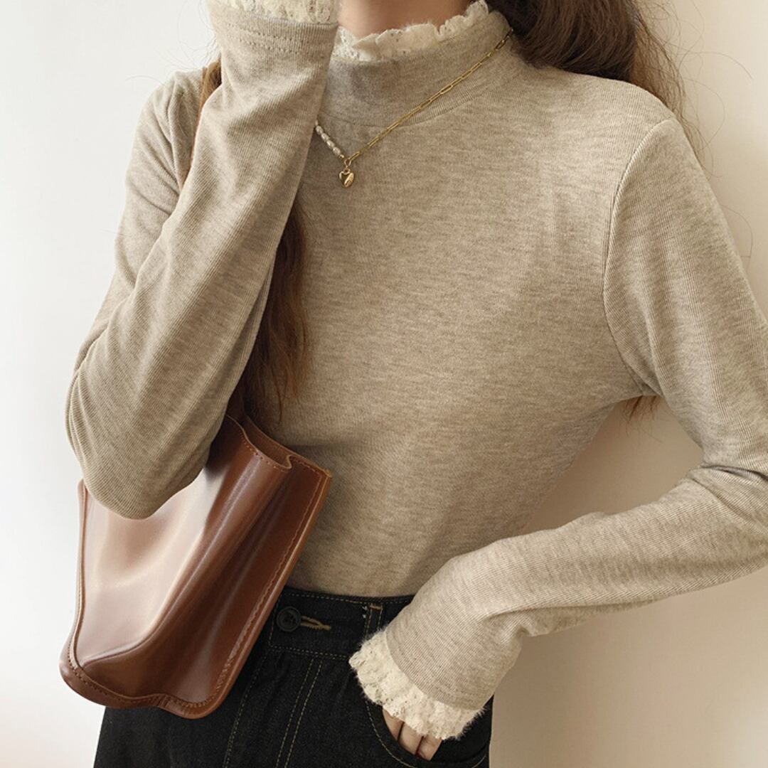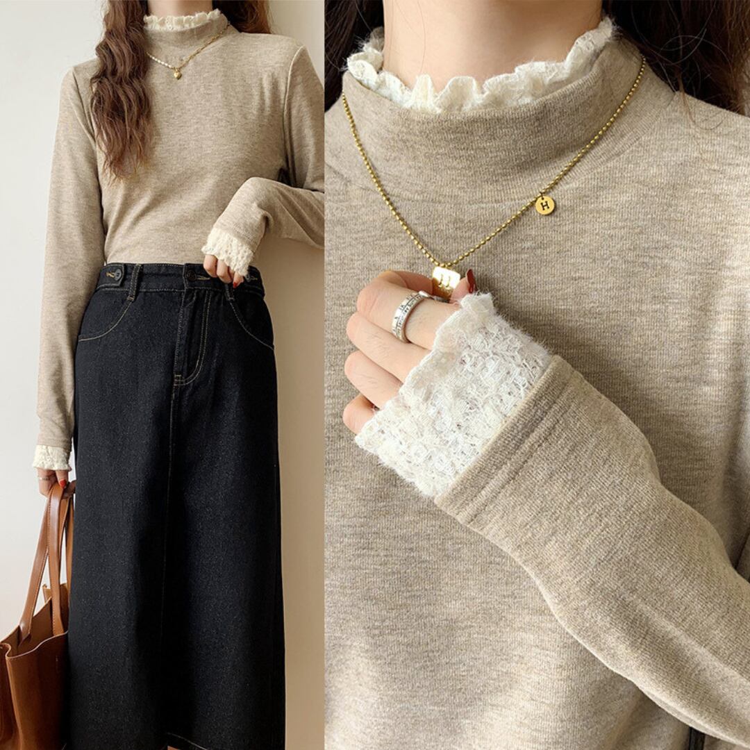 エレガントハイネック レース フリル 長袖トップスは、女性らしさと品格を兼ね備えた特別なファッションアイテムです!このトップスは、華やかなレース素材とフリルデザインが特徴で、上品な印象を与えます。ハイネックのデザインが首元を美しく演出し、どんなシーンでもあなたの魅力を引き立ててくれることでしょう!