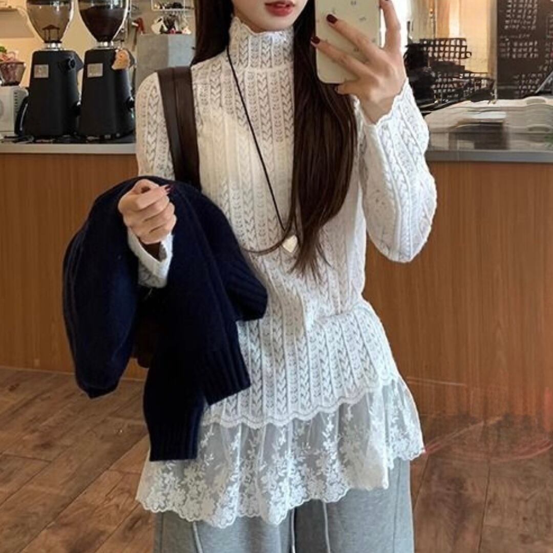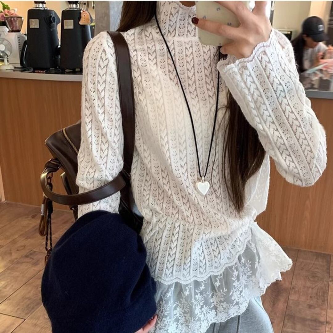 エレガントなシャーリングハイネックレーストップスは、洗練されたデザインと美しいディテールが魅力の特別なファッションアイテムです!このトップスは、繊細なレース素材とシャーリングの施されたデザインが特徴で、ニットの下でもエレガントな印象を与えます。ハイネックのスタイルが首元を優美に演出し、さまざまなシーンであなたの魅力を引き立ててくれることでしょう!